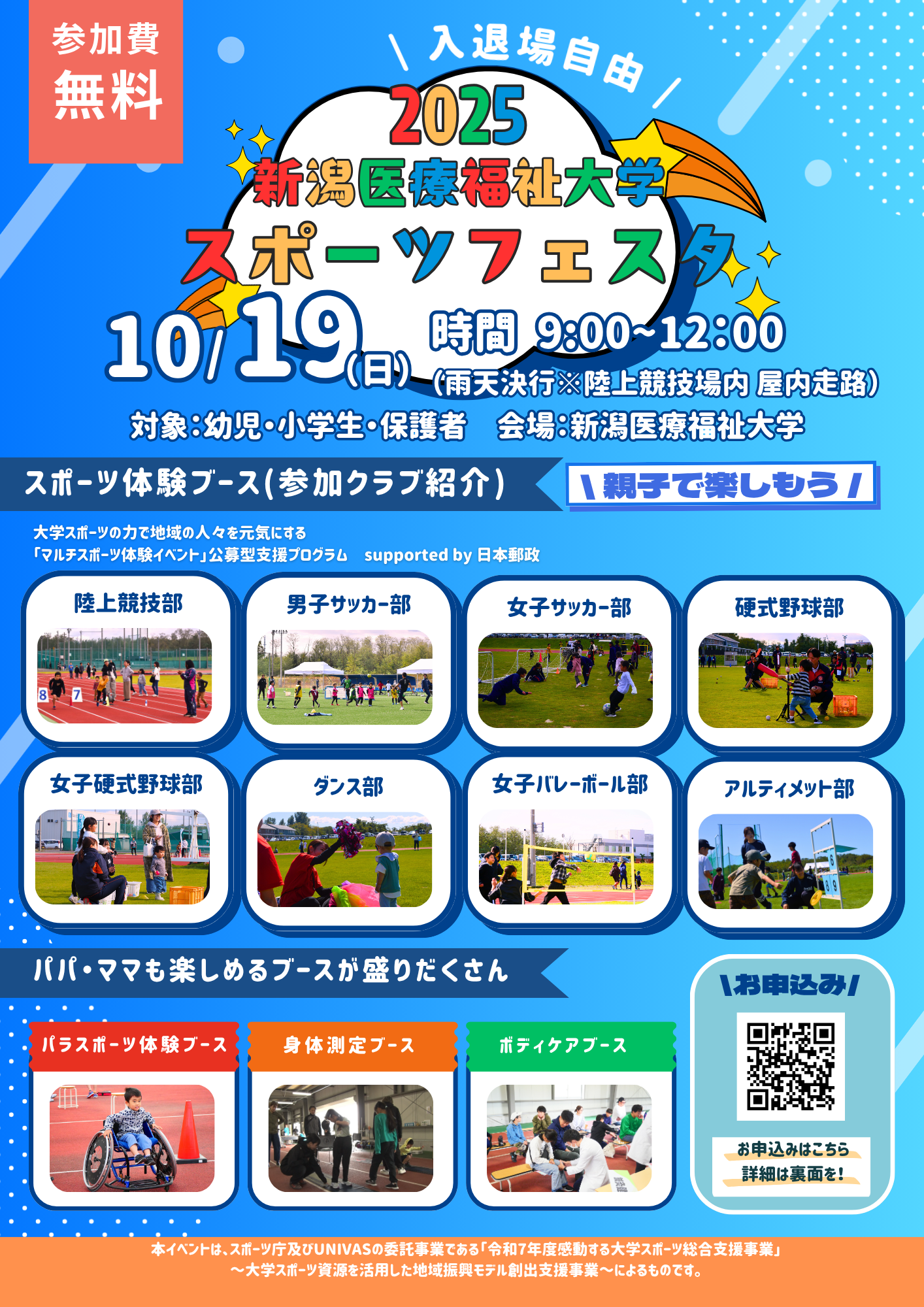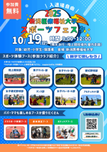 新潟医療福祉大学は10月19日(日)に幼児や小学生、保護者を対象とした「新潟医療福祉大学スポーツフェスタ」を開催します。