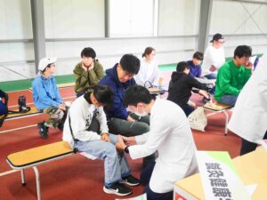 本学強化指定クラブの学生が中心となり、各競技の体験ブースを通じて子どもたちに多様なスポーツの楽しさを伝えるほか、本学の学科や地域の病院・企業の身体測定ブースやパラスポーツ体験なども設置し、
