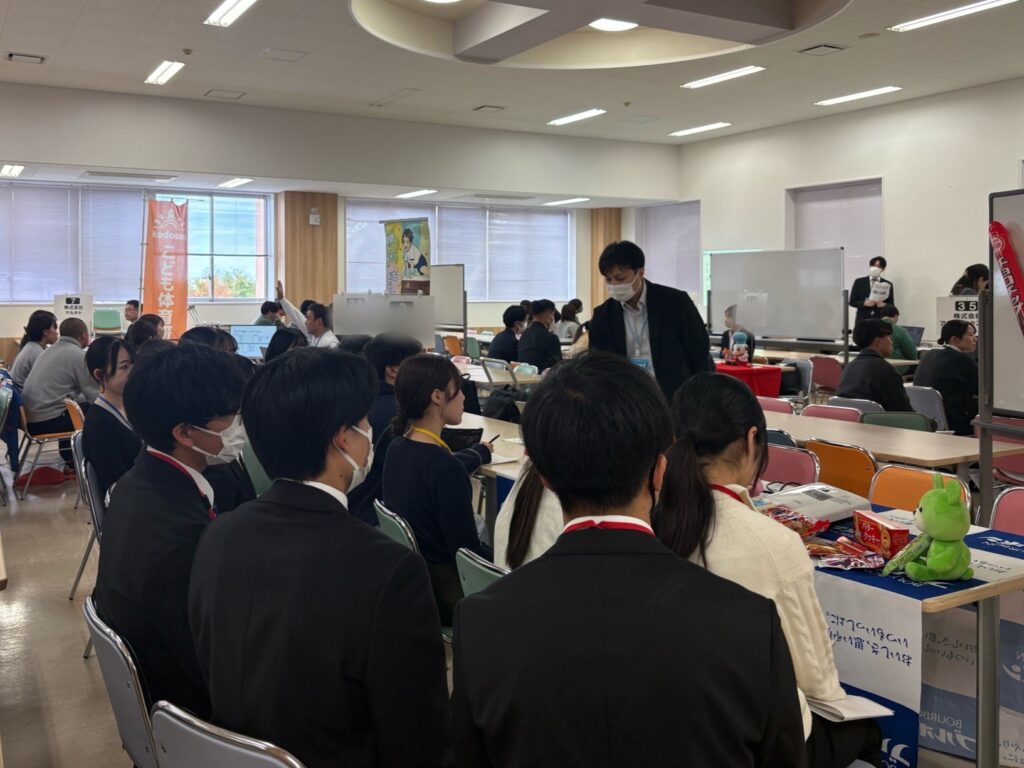 学生たちは各企業のブースを訪れ、事業内容や採用試験の説明に熱心に耳を傾け、メモを取る姿が見られました。