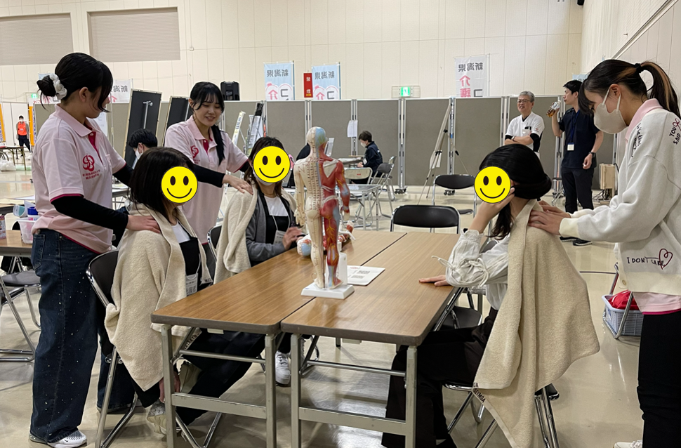社会福祉学科、鍼灸健康学科、視機能科学科の学生さんがサポートして、大盛況でした。