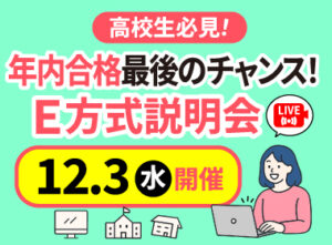 【イベント情報】12/3(水)18:00~ 年内合格最後のチャンス! E方式説明会(ライブ配信) 開催!
