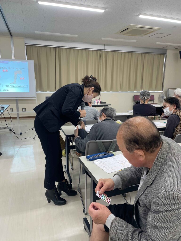 受講者は、熱心に聴講され、積極的にツボ押しに取り組んでおられました。本講座を通して、日常生活に取り入れられるセルフケアとしてのツボの有用性を頂く有意義な機会となりました。