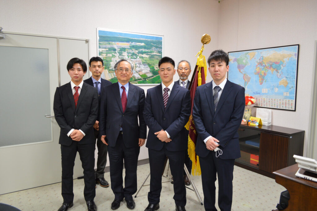 最寄りの医療機関へ移送し、救命に助力したことが顕著な功績であると認められ、2022年4月21日(木)に西澤正豊学長が顕彰しました。