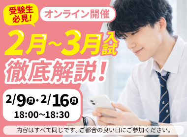 2月~3月の入試について、大学職員がわかりやすくご紹介いたします。ライブ配信形式のため、全国どこからでもご参加いただけます。