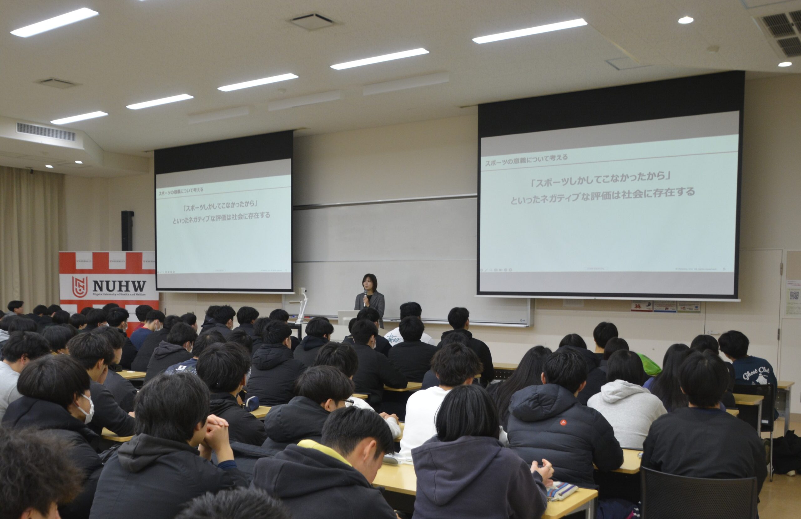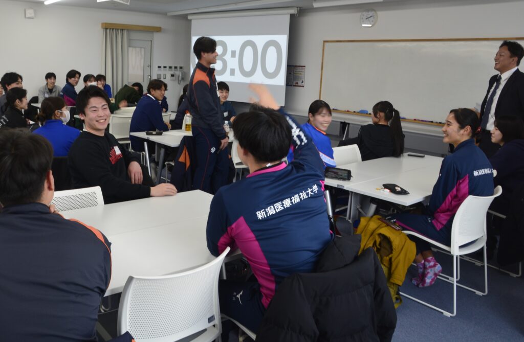 学生アスリート向けの合同企業説明会を初開催しました。当日は、新潟県内外から多数の企業が参加し、学生は企業の採用担当者と直接コミュニケーションを取ることで、競技経験を活かしたキャリア形成や就職に対する理解を深めました。自身の競技経験が、将来のキャリア形成にどのようにつながるのかを学びました。