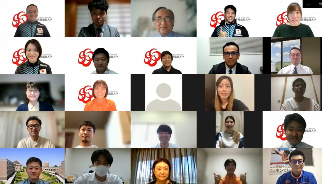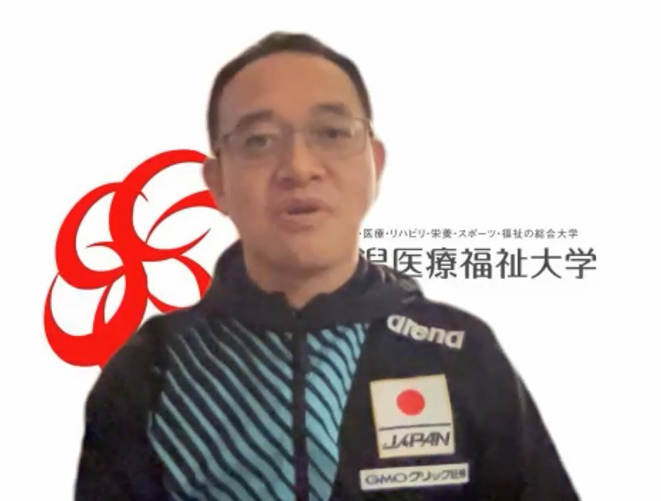 6月に開幕する第19回世界選手権(ブダペスト)に日本代表に選出された水泳部の水沼尚輝選手(本学職員)、日本代表コーチに選出された下山好充監督(健康スポーツ学科教授)、日本代表トレーナーに選出された松浦由生子先生(健康スポーツ学科講師)の3名の健闘を祈念し、本学同窓会が壮行会をオンラインで開催致しました。
