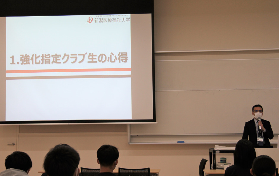 毎年新入生を対象に実施している「強化指定クラブ新入生オリエンテーション」を、5月18日(水)・19日(木)の2回に分け開催いたしました。今年度は、約200名の新入生が強化指定クラブへ入部いたしました。
