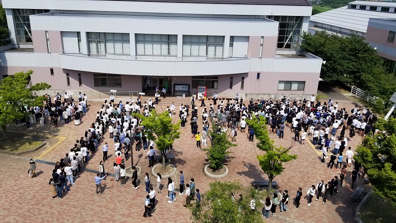 今回の訓練では、大規模災害時における避難の心得を習得するとともに、学生・教職員の日頃の防災意識向上を図ることを目的として、学生・教職員約1,100名が参加しました。