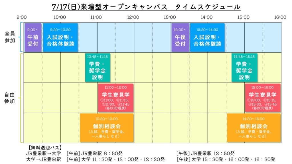 ・JRをご利用の方は、豊栄駅からの無料送迎バス(オープンキャンパス参加者限定)をご利用ください。