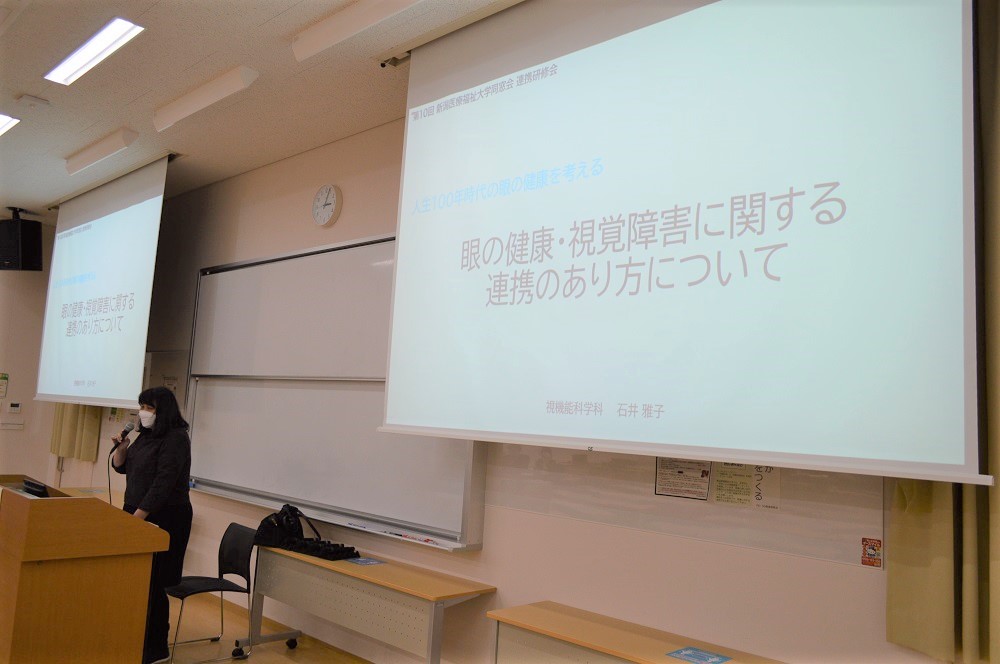 また、第2部では、視機能科学科 石井雅子教授による『眼の健康』・『視覚障害』に関する連携のあり方についての特別講演が行われました。