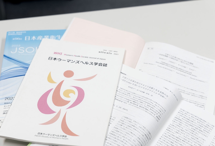 私が研究者を志したきっかけは、大学卒業後に8年間勤めた産業看護職の経験にあります。企業の医務室で働きながら社員の健康管理を行う中で、女性社員から妊娠や子育てに関する相談を多く受けました。しかし、当時の私は子育て経験がなく、大学や研修で学んだ知識を頼りに対応するしかありませんでした。その後、大学に着任し、自らも出産を経験。育児と仕事を両立する大変さを実感し、産業看護職時代を振り返る中で「働く母親をもっと支援したい」と強く思うようになりました。こうして、このテーマを深く研究する決意を固めました。2016年から現在に至るまで、子育てと仕事を両立する女性と、それを支える産業看護職を対象に研究を続けています。例えば、「未就学児を抱えながら働く女性の健康リスク」や「子育て中の女性労働者の生活習慣」に関する研究成果を発表しました。研究を通じて、「仕事を諦めるつもりだったが、もう少し頑張ってみようと思えた」「自分だけが苦労しているわけではないと安心した」といった声をいただくこともあります。研究成果だけでなく、働く母親や産業看護職の工夫や苦労を共有することも、支援の一環になると実感しています。
