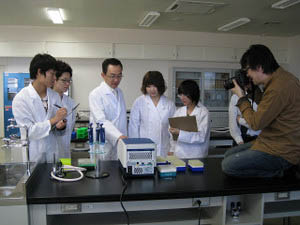 ホントの授業(実験)風景ではありませんが…『微生物実験室』にて