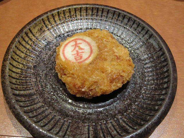 こないだゴハン屋さんで、大皿にいくつも盛られていたメンチカツ!私が大吉GETでした!