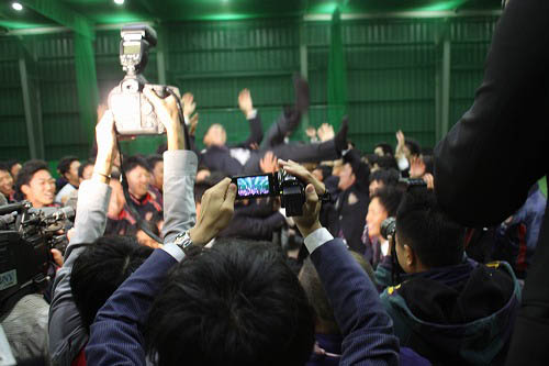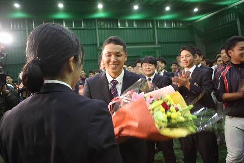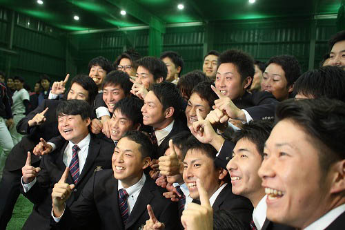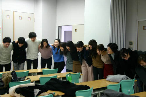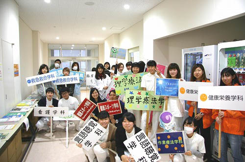 看護学科では、結団式が行われ、学生はもちろん教員も一緒に円陣を組んだとか