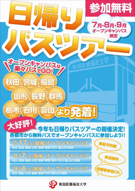 オープンキャンパス日帰りバスツアー(もちろん無料)を今年も実施