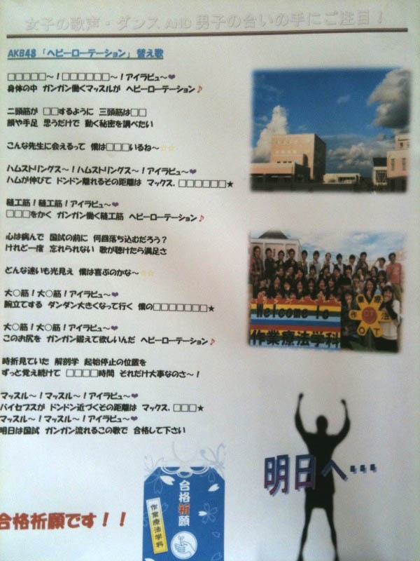 (こういった学科内での国家試験を受験する4年生への激励は形は違えど、各学科で行われているようです