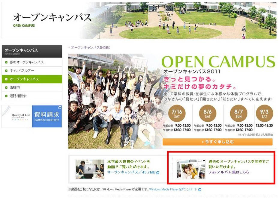 さらに、今回からオープンキャンパスのフォトアルバムを追加!