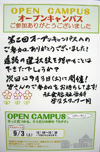 今年最後のオープンキャンパスとなった9月3日(土)。