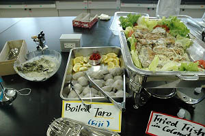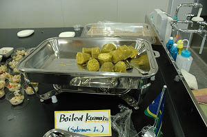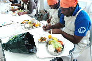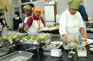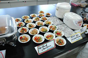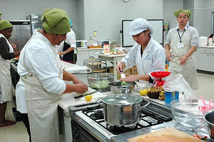 研修員の方々が普段食べている食事を実際に料理していただき、そのメニューや食事量のカロリーや栄養素を調べるというもの。