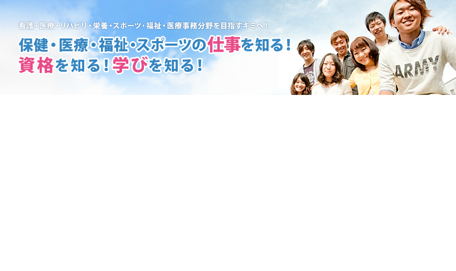 保健・医療・福祉・スポーツ分野の様々な仕事や資格について、最新情報を交えて徹底解説!