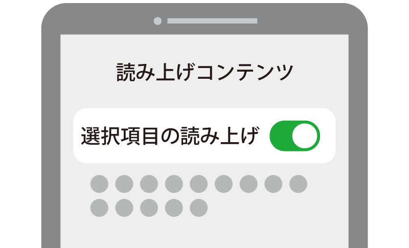 弱視など視覚に問題のある生徒は、教科書などが「見えにくい」困難を抱えています。タブレット・スマホの読み上げ機能を使い、教科書を理解することができます。また、読み書きが苦手な生徒もこの機能を使うことで、同じ教室で学ぶことが可能です。