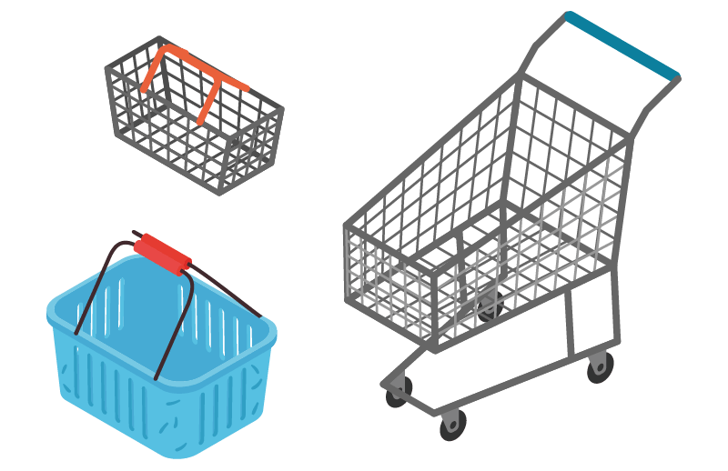 大きなカゴだと、大きくて引きずる、重くて持てない子どもでも、小さなカゴを使うことで、一人で欲しいものを選択し、レジに持っていくことができます。また、高齢者も大きいカゴだと持ち歩くことが難しい人も、買い物ができます。