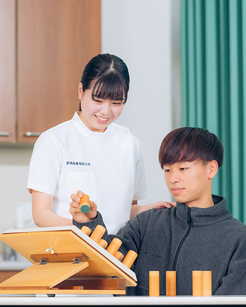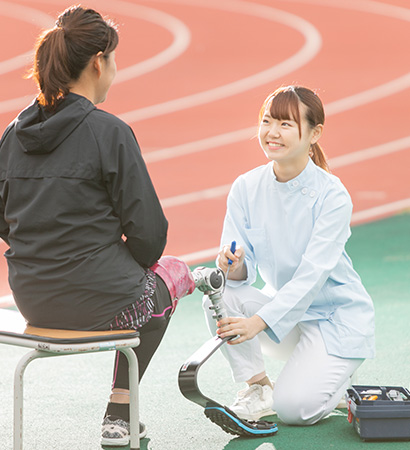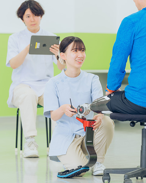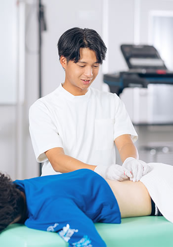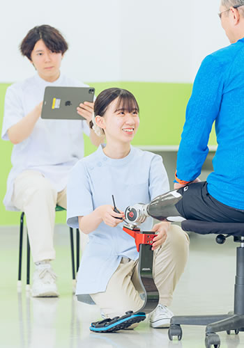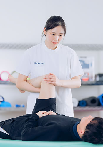 病気、ケガ、過度な運動などにより、歩く、立つ、座るなどの基本的な動作に障害を持った人に対して、歩行訓練などの「運動療法」、電気治療や温熱治療などによる「物理療法」などを用いて、その機能を最大限に回復できるようにサポートを行います。また、医学的な知識と身体の動作に関する知識を併せ持つ専門家として、アスリートのケガの予防やリハビリなど、スポーツ分野でも活躍しています。