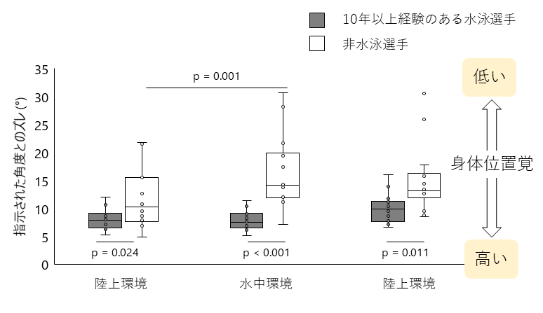 図3.水泳選手とそうでない人の身体位置覚