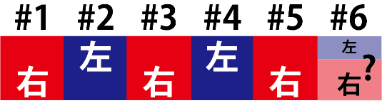 *規則性:「右→左→右→」と5番目まで来たら、あなたは6番目はどっちが来ると思いますか?これが規則性を作って、相手に次を予測させる規則性を利用した戦略です。