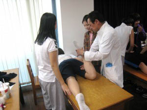 また、腰痛に関する理学療法も教えています。腰痛に関する世界的なトピックをはじめ、実践的な腰痛の治療方法を教えます。目の前で痛みが無くなっていく実技を見て、学生達は常に驚いています。