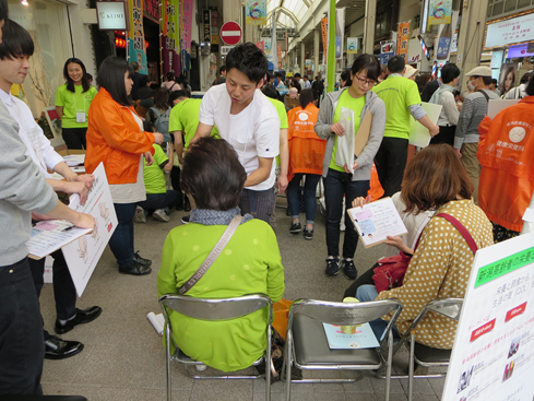 2018年10月6日(土)、7日(日)古町商店街イベント「古町どんどん」にて、通行する一般市民に対してフレイル予防に関する啓発活動を実施しました。