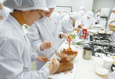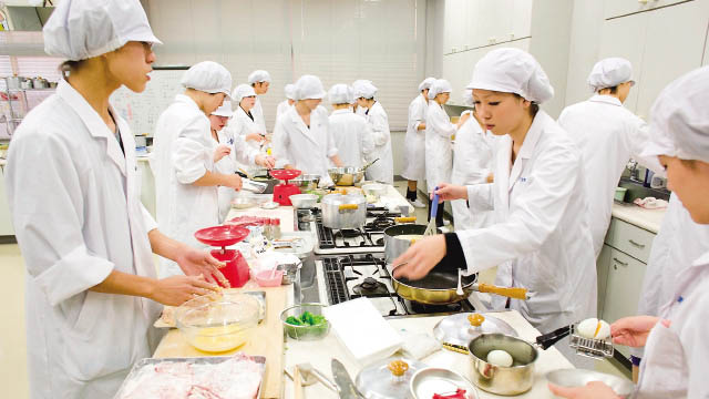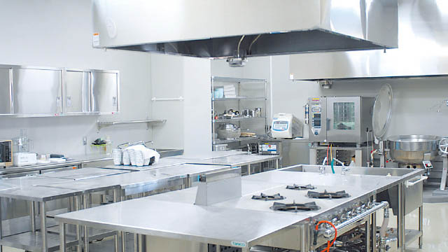 各種調理機器や調理テーブルを数多く備え、調理に関する基礎的な知識と技術を学びます。