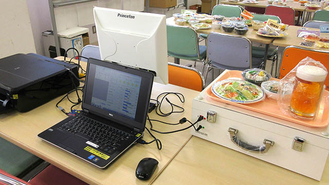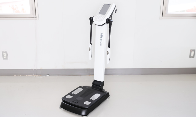 体組成計は、栄養学実習を始めとした様々な実習で使用します。体重のほか、体脂肪率が測定でき、そこから骨格筋量・皮下脂肪量・体脂肪量などが確認できます。これら情報を基に栄養評価を行います。