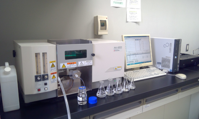 原子が特有の波長の光を吸収する現象を利用して、おもに金属元素を定量する機器です。炎や炉などを用いて試料中の目的元素を原子蒸気化して、その蒸気層に元素固有の波長の光を当て、層中の光の吸収量(吸光度)を測定することで、試料中の元素濃度を定量します。食品分野でミネラルウォーターや食品中のナトリウム、鉄、亜鉛などの無機質(ミネラル)の定量に用いられているほか、環境分析などの分野でも広く用いられています。