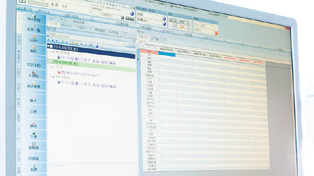 電子カルテシステムは、紙のカルテに代わって、患者さんの訴えや治療の内容といった診療情報を電子的なシステムに記録、管理し総合的に参照できるICT(情報通信技術)ツールです。この科目では、学科のバーチャルホスピタルという実際の現場を想定した場所で、電子カルテシステムの仕組みや、操作・運用に必要とされる基礎的な思考と判断について、実際の体験を通して学んでいきます。