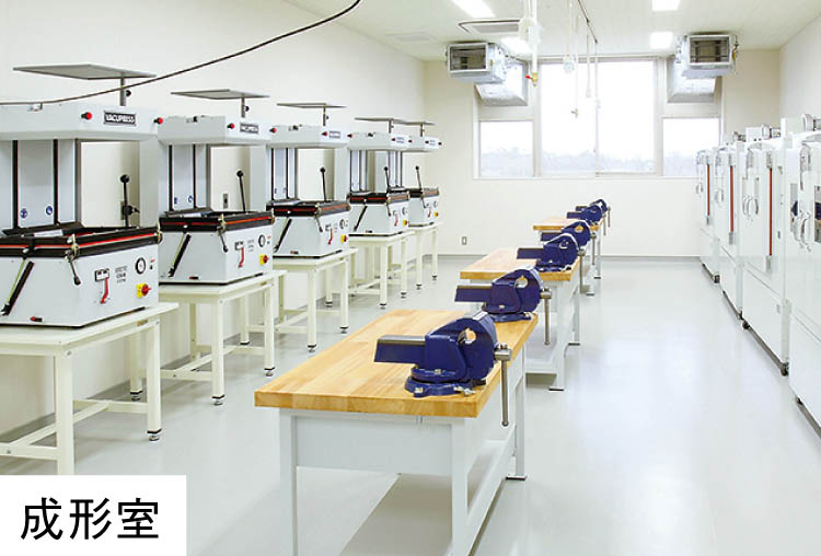 世界最先端の技術を持つドイツのオットーボック社設計による作業環境と、最新の機械設備を配置し、学生一人あたりの工作機械の台数、占有スペースの広さは、世界最高レベルの実習環境(国際義肢装具士養成認定校認証)を実現しています。また、コンピュータ制御の集中集塵システムの導入など、学生の安全面と健康面にも十分配慮されています。2020年度には3Dスキャナー・3Dプリンターを導入し、最先端のものづくりが学べる環境となっています。
