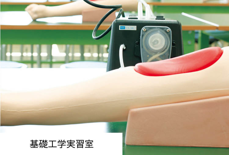 臨床工学実習室には、人工心肺装置などの生命維持管理装置や超音波診断装置などの検査機器を設置しています。また、顕微鏡室では最新のデジタル顕微鏡を配置し、大型モニターに映写することで、より鮮明な画像を観察することができます。 さらに、臨床化学や遺伝子工学を学ぶ装置も充実しています。