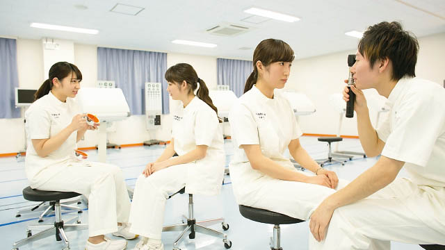 この科目では、視能訓練士が行う検査手技やその評価方法について学びます。具体的には視力検査や視野検査のような基本的な検査を中心に、眼科一般検査の基礎技能の修得を目指します。また眼科臨床で検査することを想定しながら、患者様に対する検査説明や接遇についても学習します。