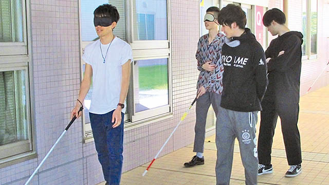 この科目では、視覚障害によって日常の生活に支障や困難をきたしている方に対するリハビリテーションを修得します。また、拡大鏡や遮光眼鏡など、使用者に適した視覚補助具の選定とその使用方法を学びます。さらに、視覚障害を想定した日常行動や歩行の介助についても実践的に学んでいきます。