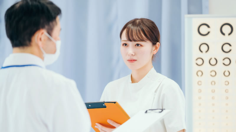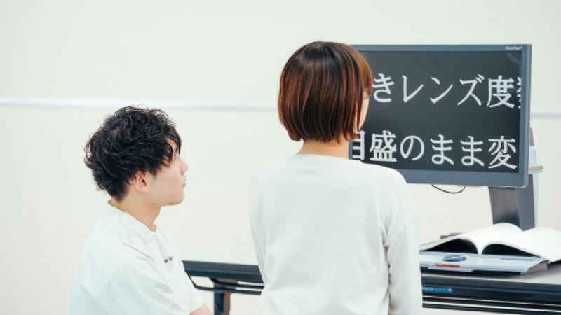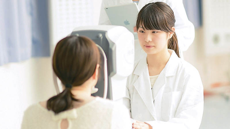 眼科医療機関で、合計13週間の臨床実習を行います。2年次では見学、3年次では実践的な検査や訓練、4年次では総合実習と、段階的に学びます。臨床経験豊富な指導者から指導・助言を受けながら、学内で学んだ知識・技術の応用を目指します。