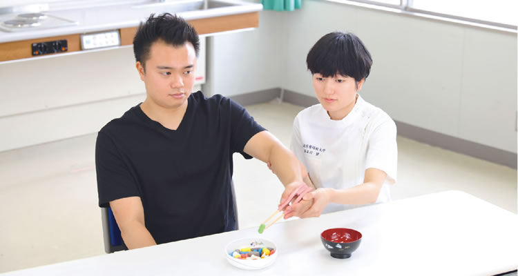 対象者への作業療法を見学・体験することを目的に、身体障害領域で学外実習を行います。作業療法士の業務の見学や職員や対象者のコミュニケーションを通じて、作業療法士としての対象者への対応や接遇について学びます。