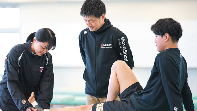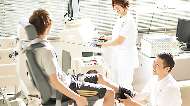 この科目では、アスリートへより良いリハビリテーションを提供できるように、各スポーツ特有の動作によって発生するスポーツ整形外科疾患の発生メカニズムを解剖学、運動学、病理学などの知識を理解・統合して学びます。講義は、トップアスリートへの理学療法経験が豊富な教員が担当します。