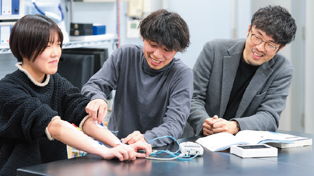 理学療法士には、ヒトの動きの異常となる原因を考え適切な治療を行い、正常な運動を引き出すことが必要とされます。そこで、運動学の授業では患者様を治療するうえで不可欠な知識を学び、ヒトの動きを分析する基礎を身につけます。また、運動学は解剖学や生理学とも密接に関係するため、それぞれを結びつけながら学ぶことで学習効果も高まります。