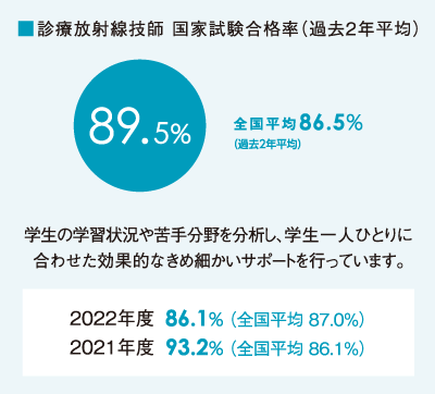 徹底した国家試験対策により、全国平均を大きく上回る合格率を達成!