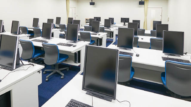 最新の医用画像表示モニタを25台設置しています。学生は一人1台のモニタを使用しながら、MRI検査やX線CT検査などの各種検査の医用画像を観察し、異常所見を指摘する力を身につけます。また、脳や心臓などの三次元画像の作成方法についても実践的に学びます。