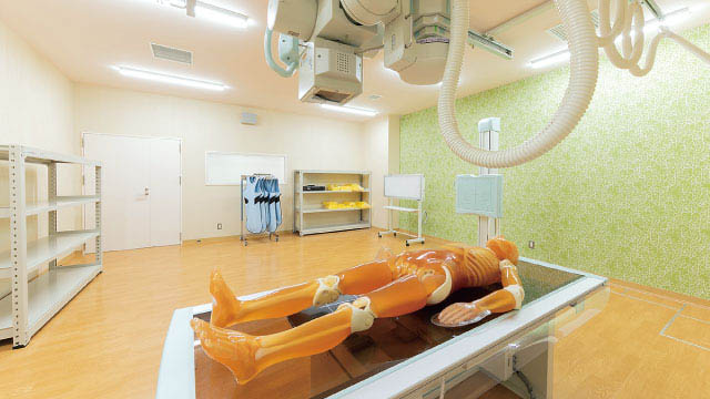 バリウム検査などのX線を用いた胃透視検査や注腸検査に使用されるX線TVモニタを配置しています。TVモニタには検査画像がリアルタイムで写し出され、学生はこれら検査方法・技術を実践的に学びます。