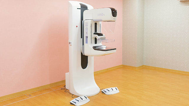 乳がん検診で使用されるマンモグラフィ検査装置を配置しています。乳がんの早期発見を目的に、マンモグラフィ検査装置特有の撮影手法や画像診断などの技術を学びます。