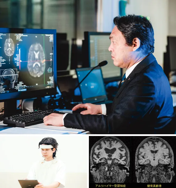 高齢化の進行に伴って、認知症高齢者の増加が社会問題になっています。認知症発生のメカニズムは、完全には解明されていないため、特効薬はありませんし、予防法も確立されていません。しかし、認知症になったら何の手立てもないというのでは、家族は救われません。そこで考えたのが、完治は困難でも、症状の進行を緩やかにすることが重要な予防の一つだということです。また、認知症の人が共生でき、その人らしく人生を全うできる街づくりを目指すことも大切になります。MRI(磁気共鳴画像)や認知機能検査などのデータを解析し、軽度認知障害やフレイル※になった人の脳機能メカニズムや、脳内物質の変化などを調べ、認知症予防の研究を進めています。