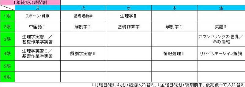 後期になり、前期とは時間割がガラリと変わりました。