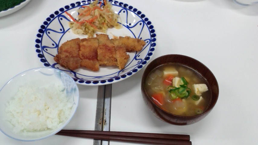 けんちん汁、キャベツとにんじんのおかか和えです(^^♪